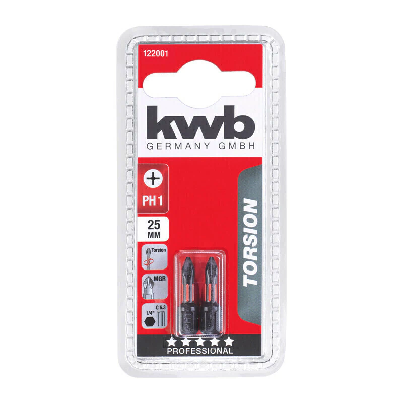 Esa serie de puntas Torsión de KWB está equipada con una zona de torsión especial que permite torcer el extremo de la punta durante los picos de carga. Así la zona de torsión protege las puntas de romper prematuramente bajo carga, prolongando así su vida útil.
