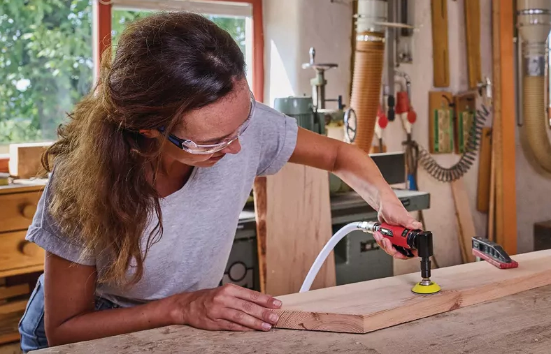 La amoladora angular de aire comprimido TC-PA 50 es una herramienta adecuada para distintos compresores Einhell. Funciona a una presión de aire de 6,3 bar con un consumo de aire de 113 litros por minuto. Equipada con una boquilla enchufable, la amoladora angular se puede conectar fácilmente a una manguera de aire comprimido de un compresor. Gracias a su peso ligero y a sus superficies de agarre suave, la tronzadora se adapta óptimamente a la mano y permite un trabajo agradable y sin fatiga. La amoladora angular de aire comprimido se suministra con numerosos accesorios para distintos trabajos de lijado. Esto incluye 5 papeles de lija de grano P80, P100, P180, P240, P600, P800, P1000, P1200, P2000, P3000.