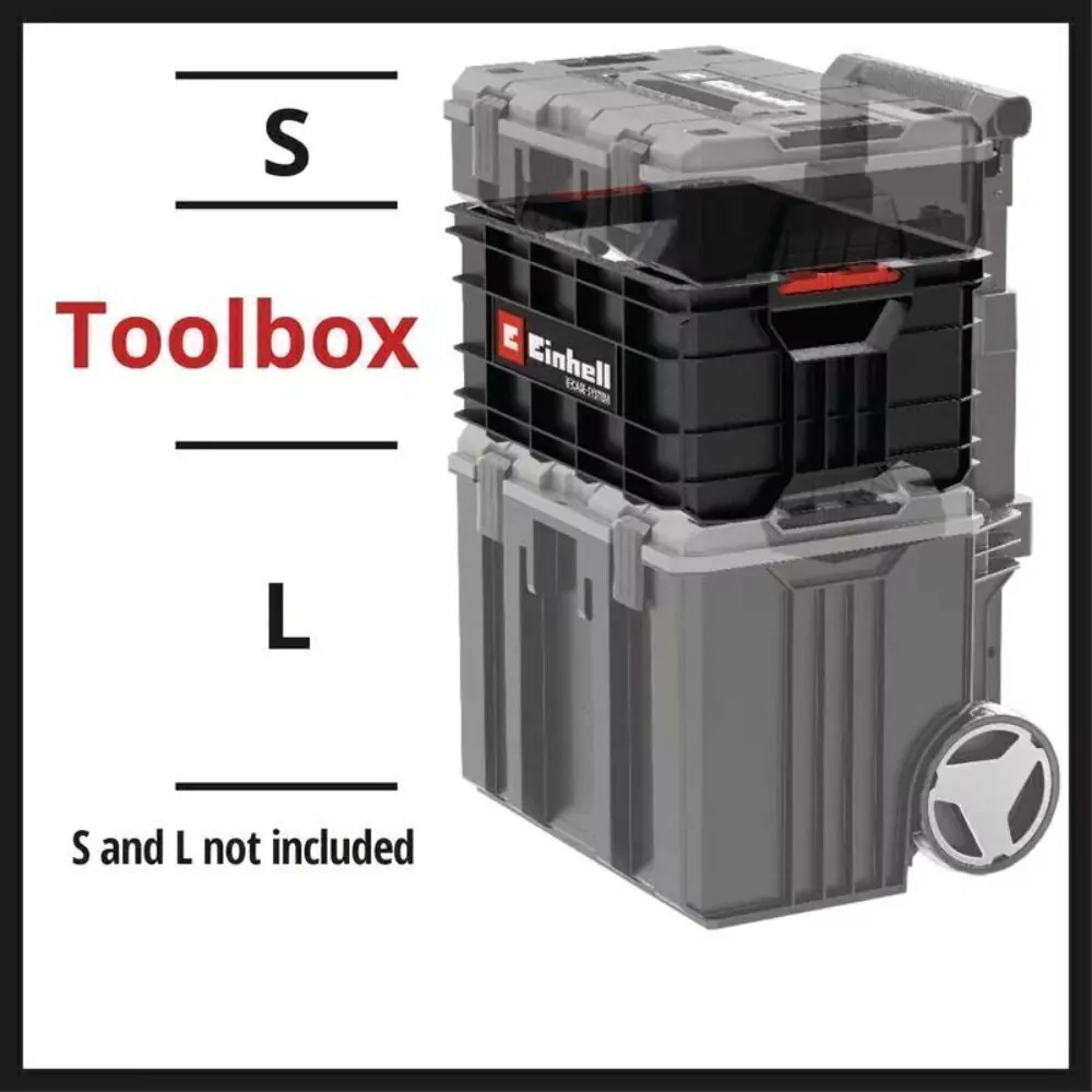 La caja de herramientas E-Case Original Einhell es miembro del sistema E-Case modular de Einhell. La caja de herramientas es óptima para almacenar y transportar máquinas, herramientas y accesorios hasta un máximo de 90 kg. Un práctico sistema de enclavamiento para la conexión de cajas y maletines de sistema apilados garantiza el orden al almacenar y permite un transporte seguro. La caja de herramientas está hecha de polipropileno y, por lo tanto, es resistente al calor y a los golpes. Gracias a su altura interior de 195 mm, la caja también es adecuada para almacenar herramientas grandes. Dos asas laterales ergonómicas aseguran una comodidad de uso óptima.