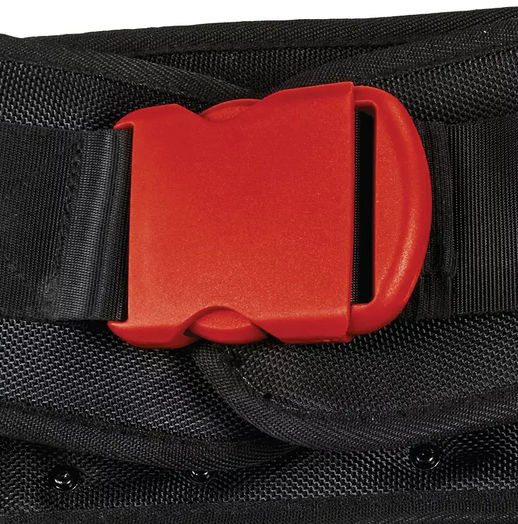 Coloca la batería en el cinturón y ajusta la longitud según tus necesidades. Asegúrate de que esté bien sujeto antes de comenzar a trabajar con tus herramientas. Este cinturón es ideal para lograr un trabajo más eficiente y cómodo, minimizando el esfuerzo físico.